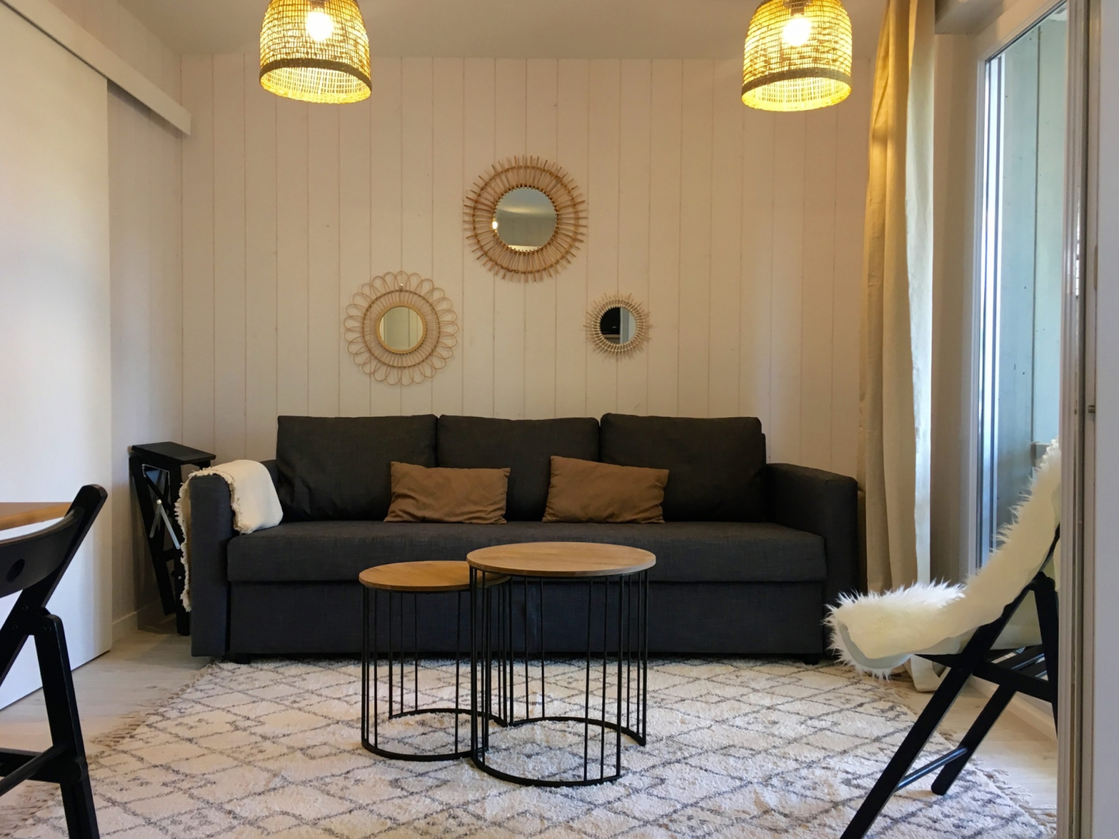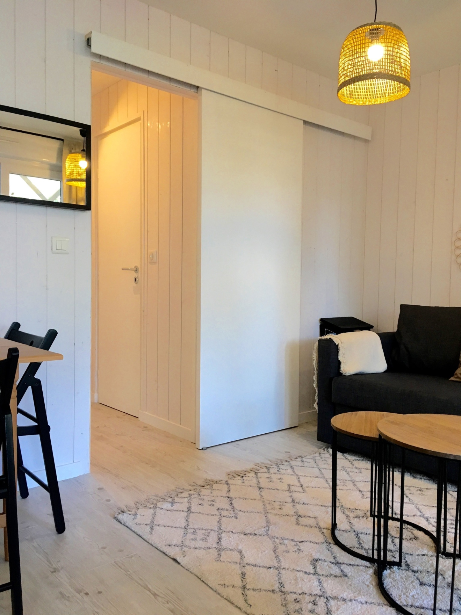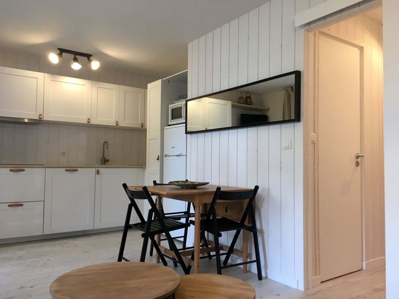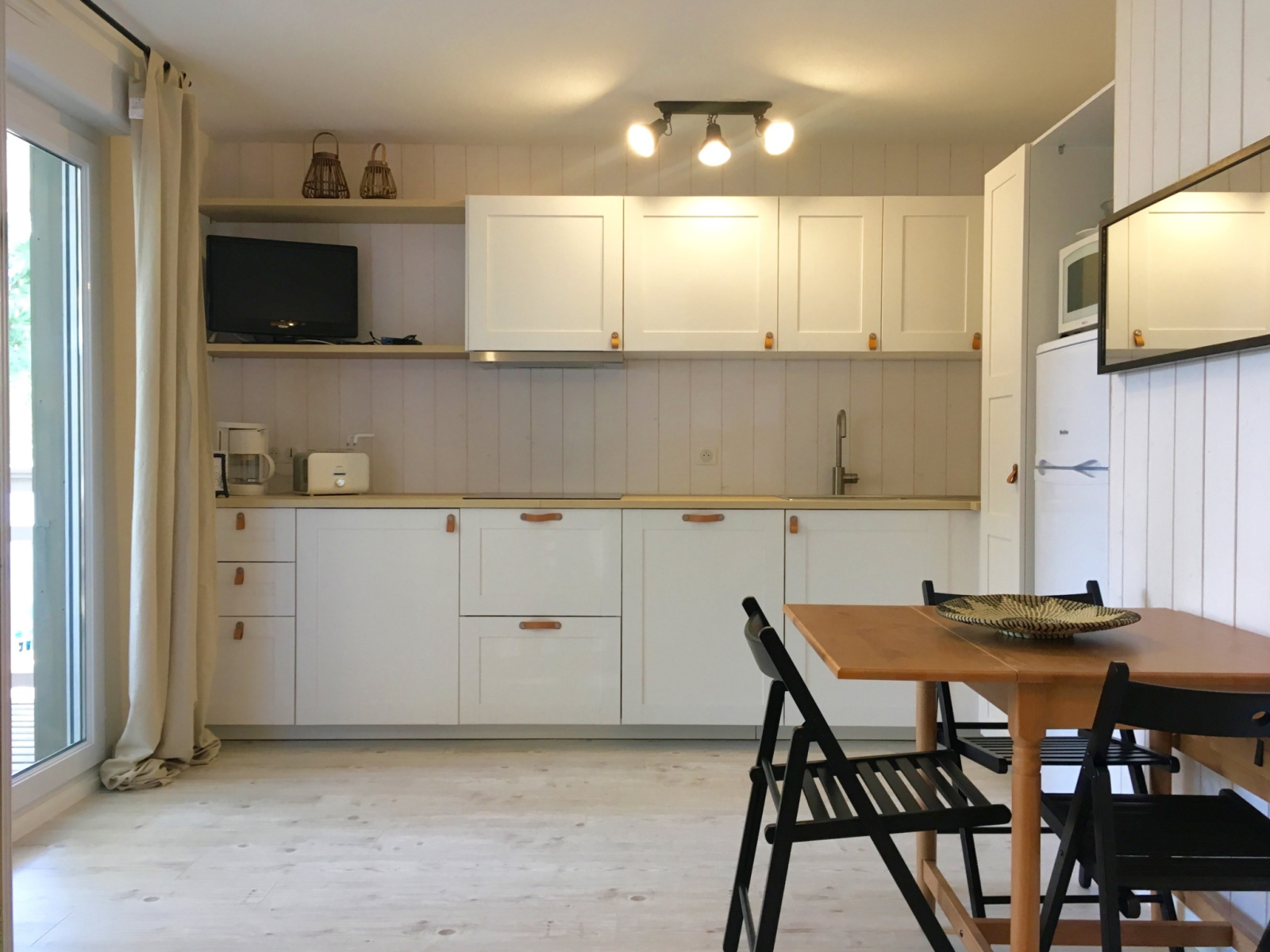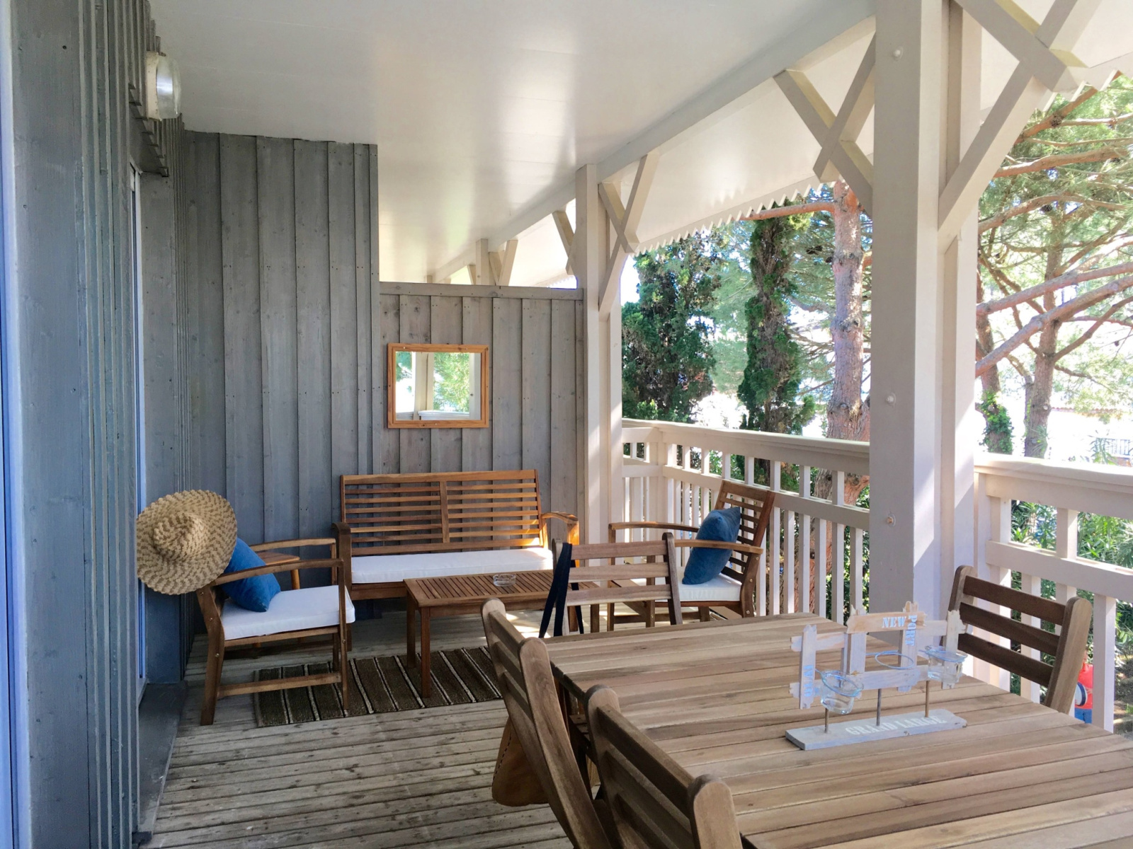 L'appartement est tout juste re décoré avec beaucoup de goût (nouvelle salle d'eau, nouvelle cuisine américaine) : Bel espace facile et fonctionnel, situé au 1er étage. Il y a 2 chambres indépendantes (dont une en "cabine" toute petite mais efficace). La pièce de vie donne sur une grande terrasse aménagée (couverte) avec vue sur les arbres et la piscine de la résidence ! Il y a une place de parking.