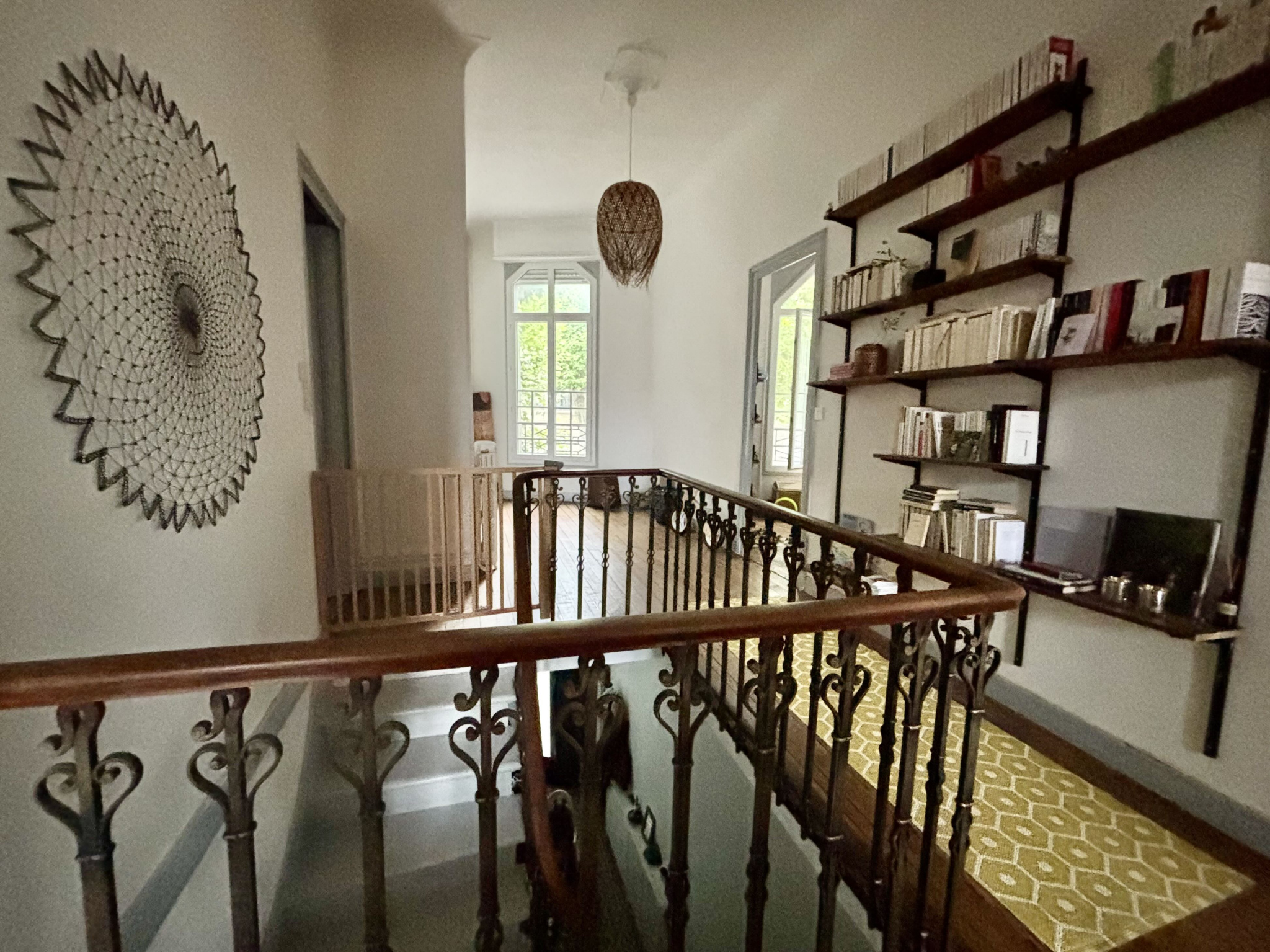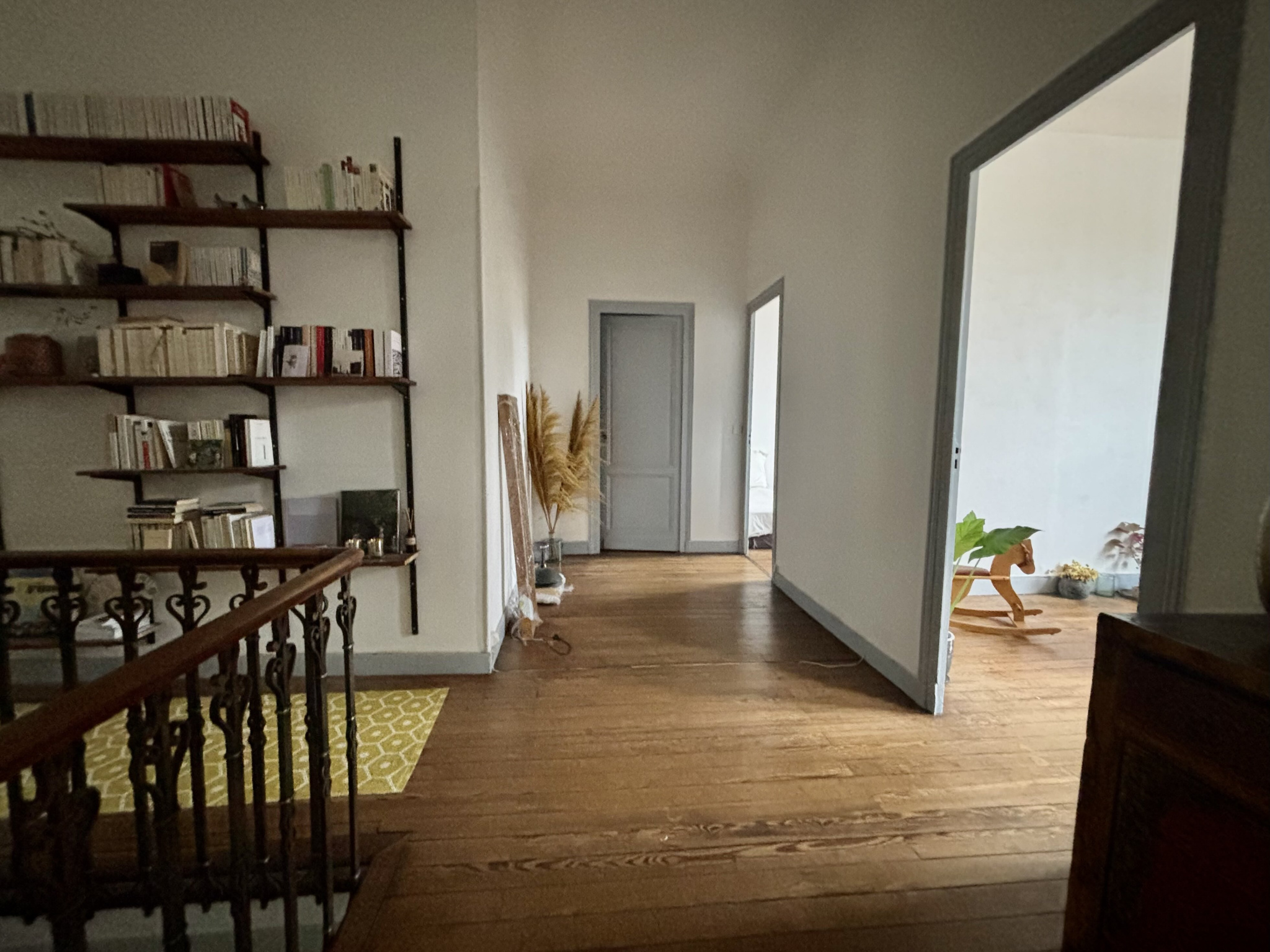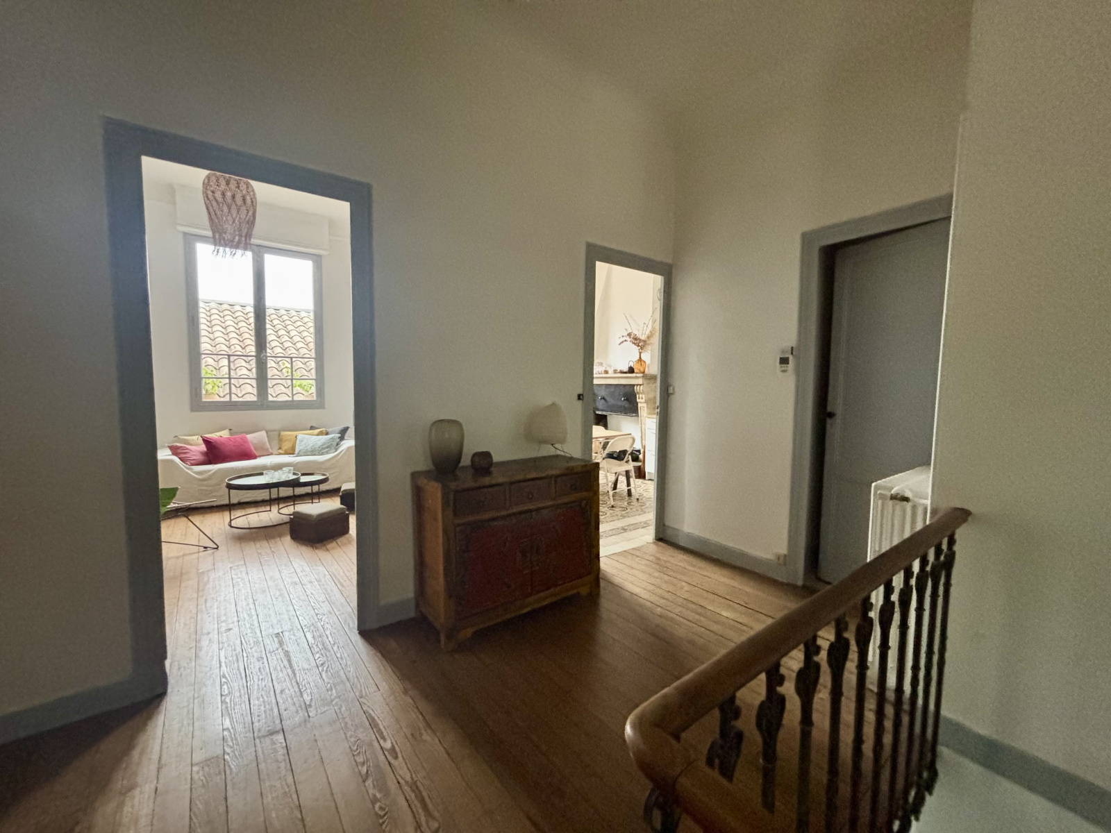 Un escalier en pierre vous mène au premier étage avec un vaste palier aux parquets anciens et de très belles hauteurs sous plafond. Il dessert trois grandes chambres de plus de 14 m2, une salle de bain complète (baignoire et douche), un wc séparés, un dressing et une belle pièce de vie double salon - cuisine. L'ensemble possède beaucoup de charme.