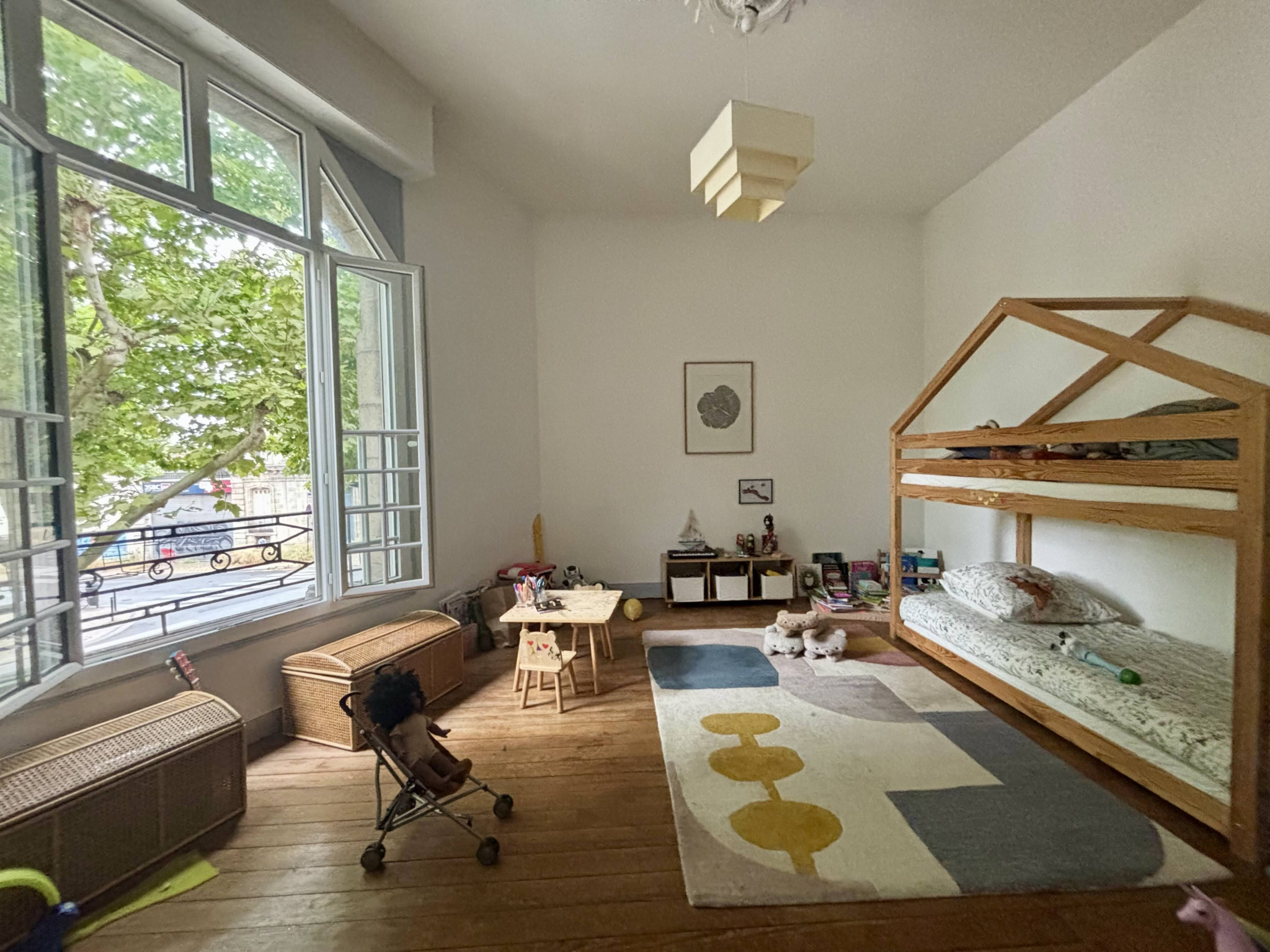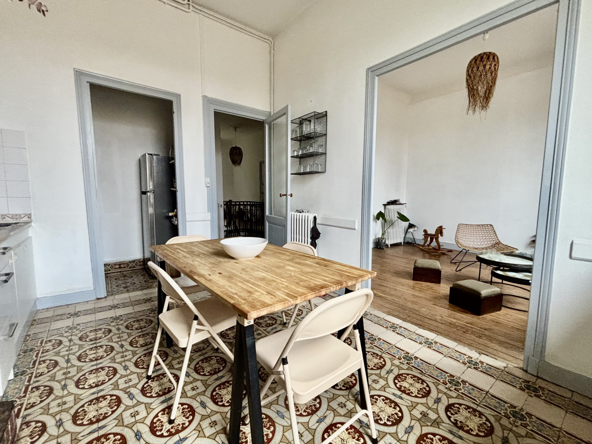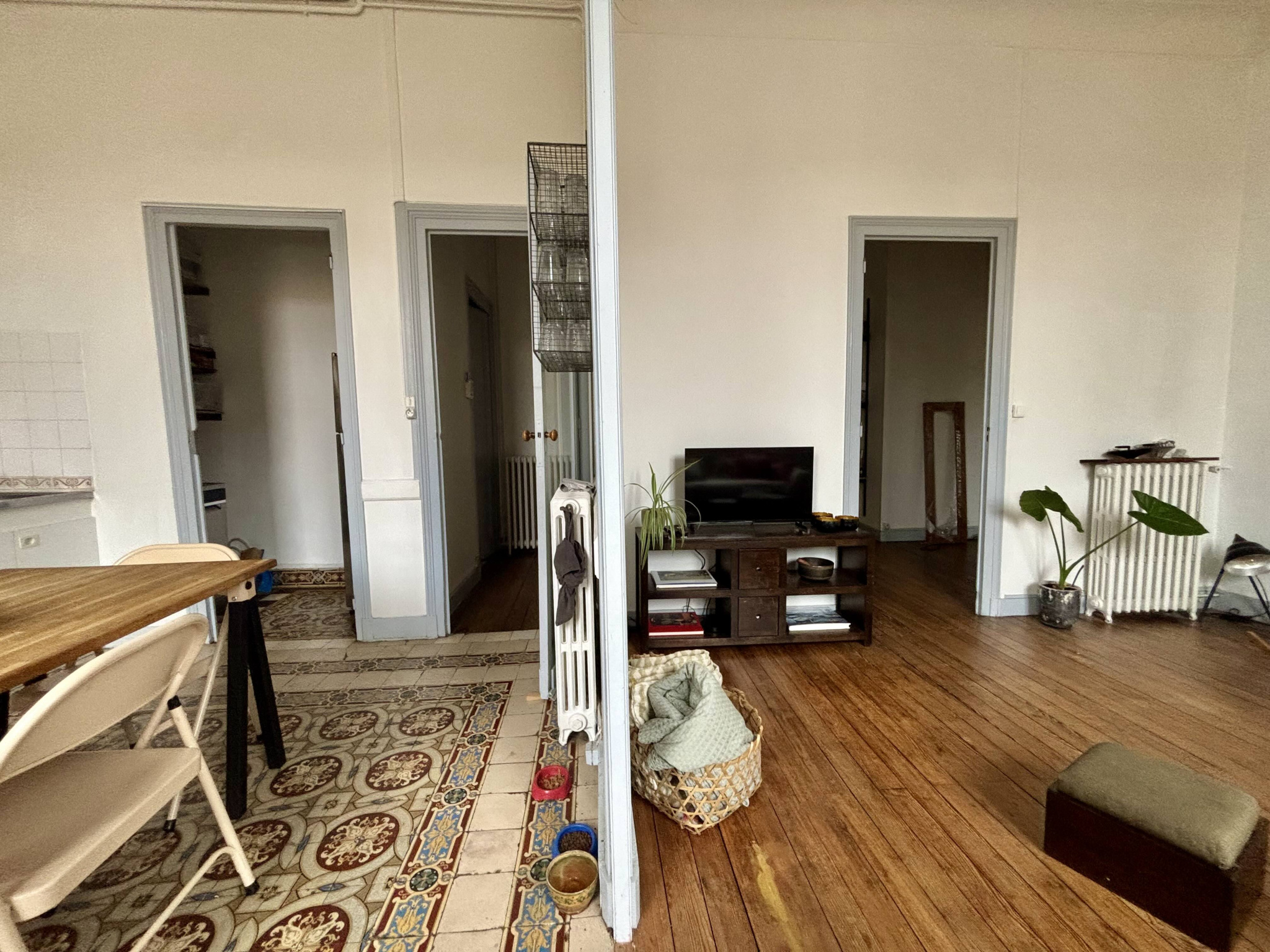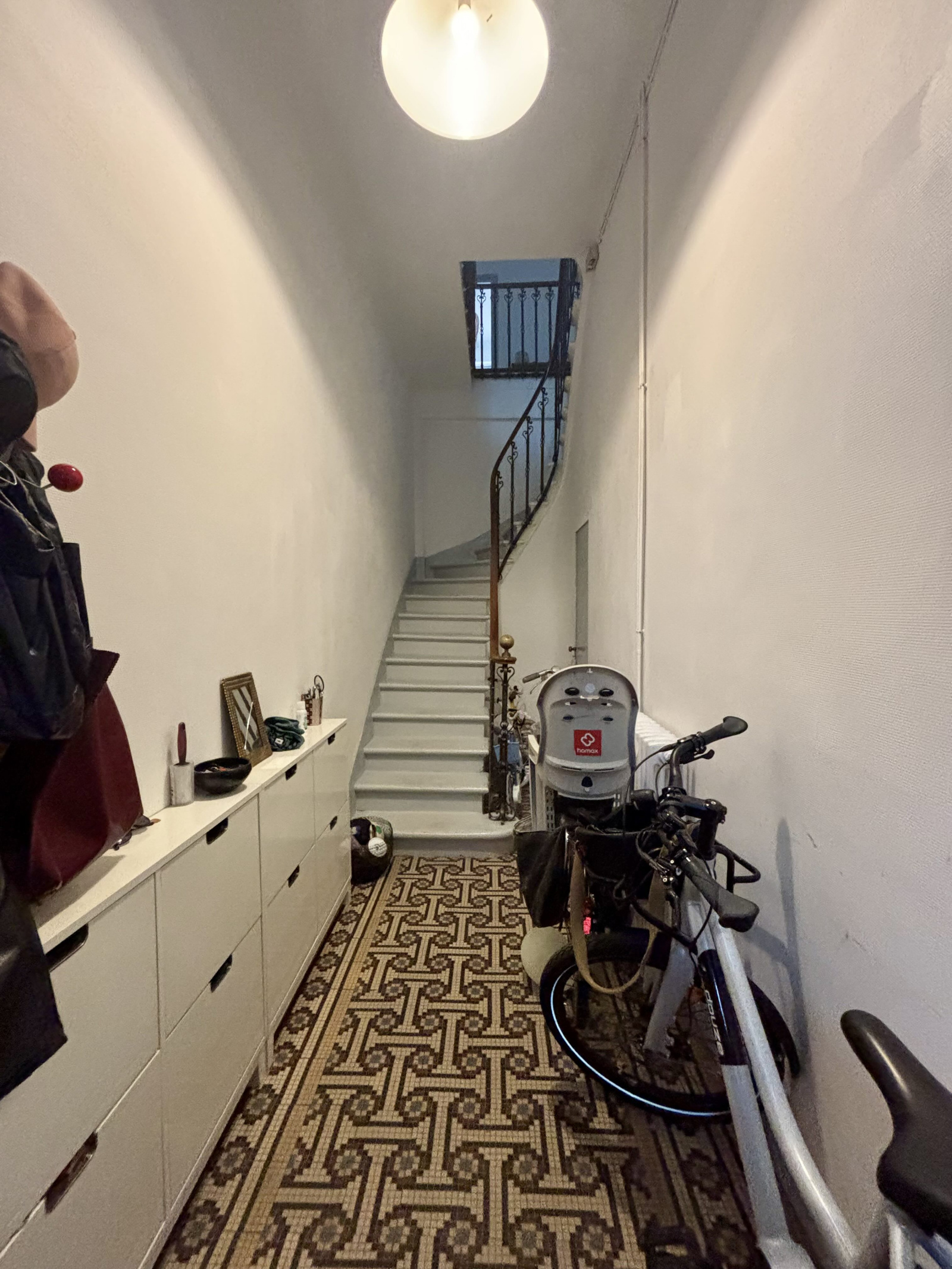 Situé dans un immeuble de pierre des années 30, ce grand appartement possède une magnifique entrée privative, vous permettant de stoker des vélos et trottinettes.